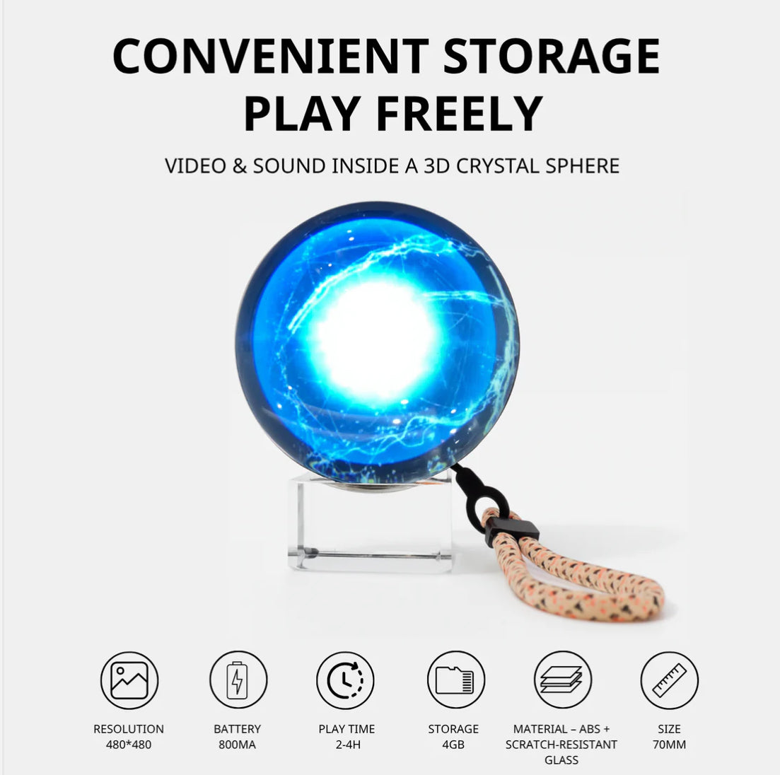 - Crystal-Clear Display – A stunning spherical design that makes videos look enchanting.
